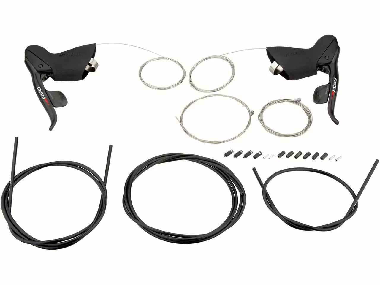 La paire de leviers SRAM Red 2x11V, la marque américaine propose un modèle combinant confort absolu et performances très élevées, avec un poids record de 280 grammes la paire.