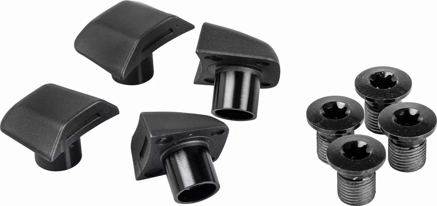 Ces vis de plateau Shimano sont compatibles avec le pédalier Ultegra FC-8000 à 4 bras, mais seulement avec la version 36-46 dents. Elles ont un filetage M8 x 10,1 mm et sont à placer au milieu entre les petits et les grands plateaux. Quatre capuchons, qui sont aussi les écrous, sont fournis.